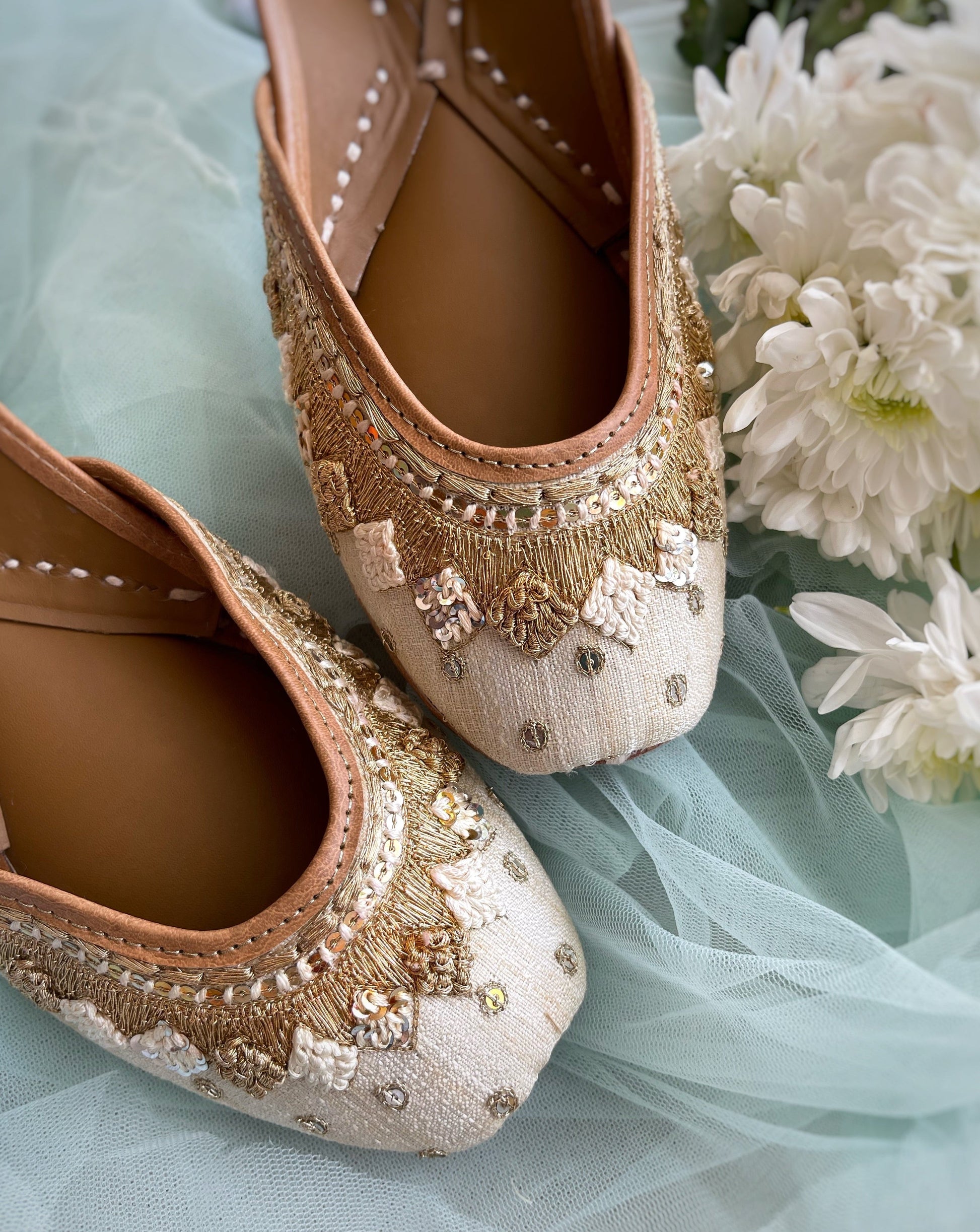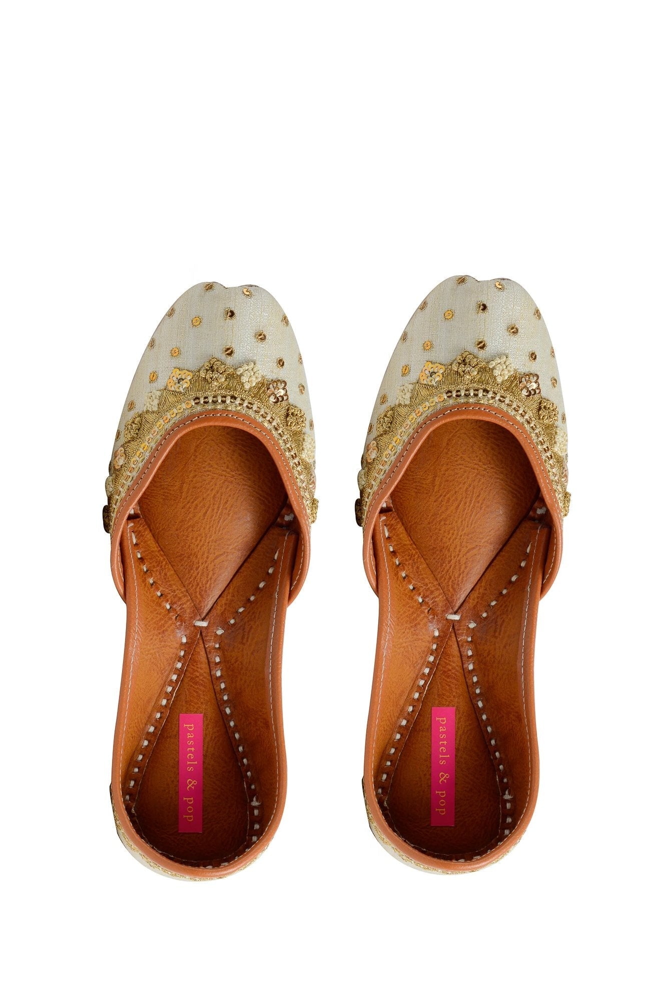 If footwear is jewellery, ‘Dove’ is the Solitaire. A rich off-white surface made of raw silk serves as the canvas for a melange of elements handcrafted using knot work, zardosi, and sequins embroidery. Be prepared to fall in love! You don’t need an occasion to flaunt these gems.