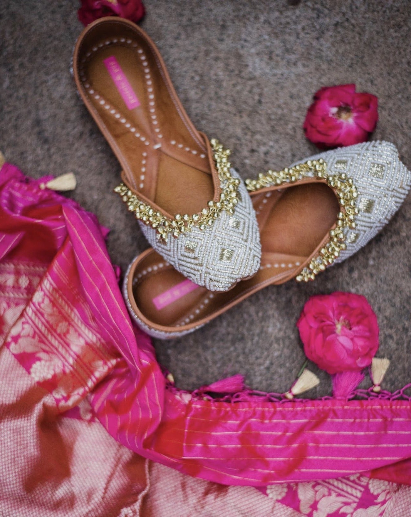 Nothing can beat the elegance of pearls, the shine of gold and the sound of ghungroos. There is a reason we call this pair FIRST LOVE! Perfect for weddings, for parties and to uplift your mood (seriously, pretty shoes have that effect!).
