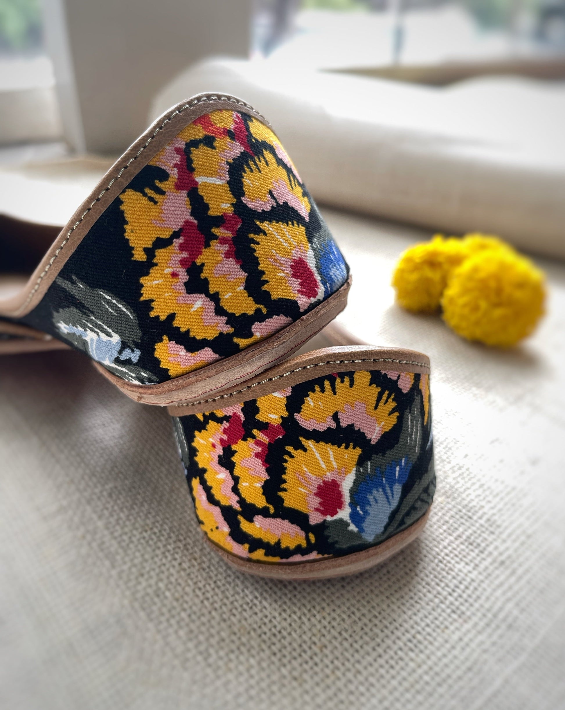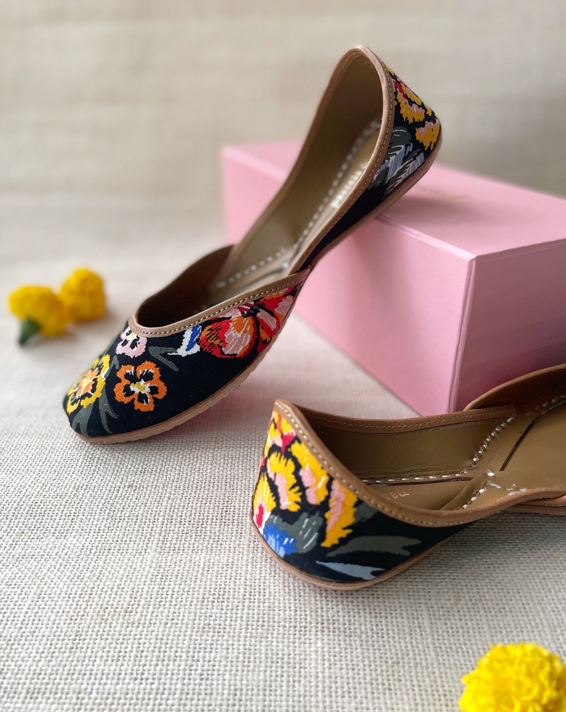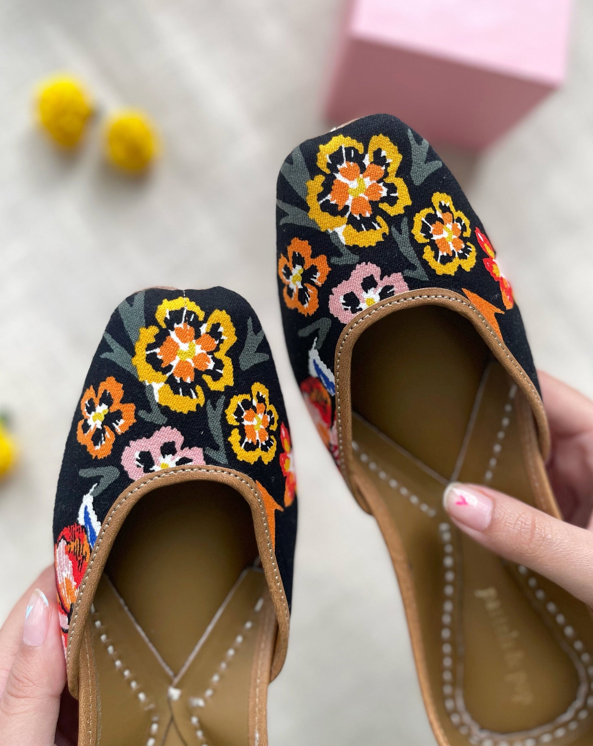 A midnight black base with bright floral motifs in yellow, orange and baby pink make this pair really stand out! Easy to maintain and will go with so many outfits from your wardrobe.