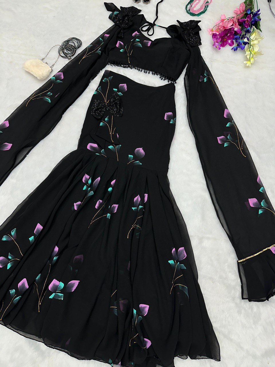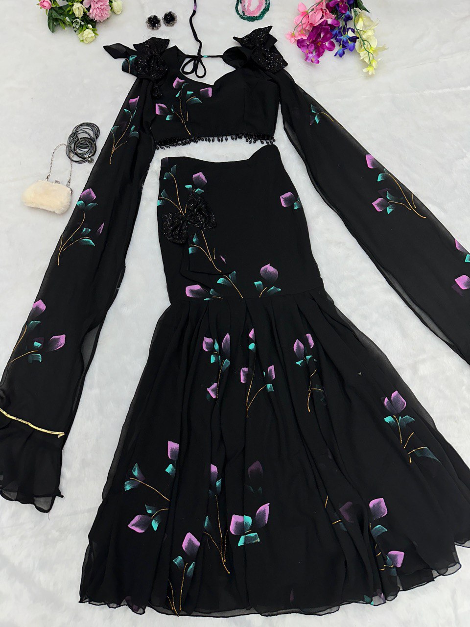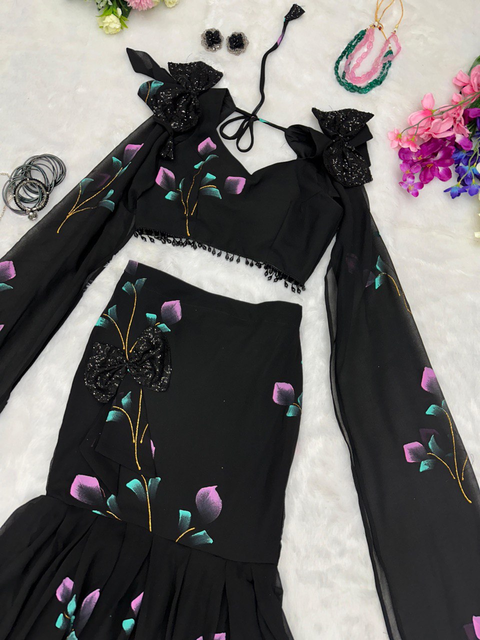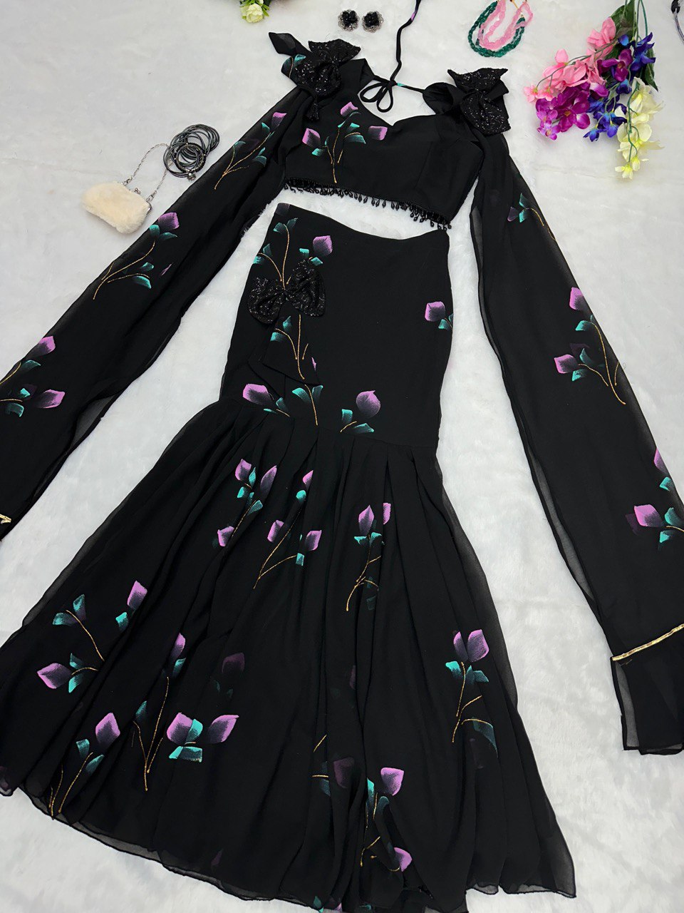 Fully Stitched Black Color Party Wear Lehenga Choli