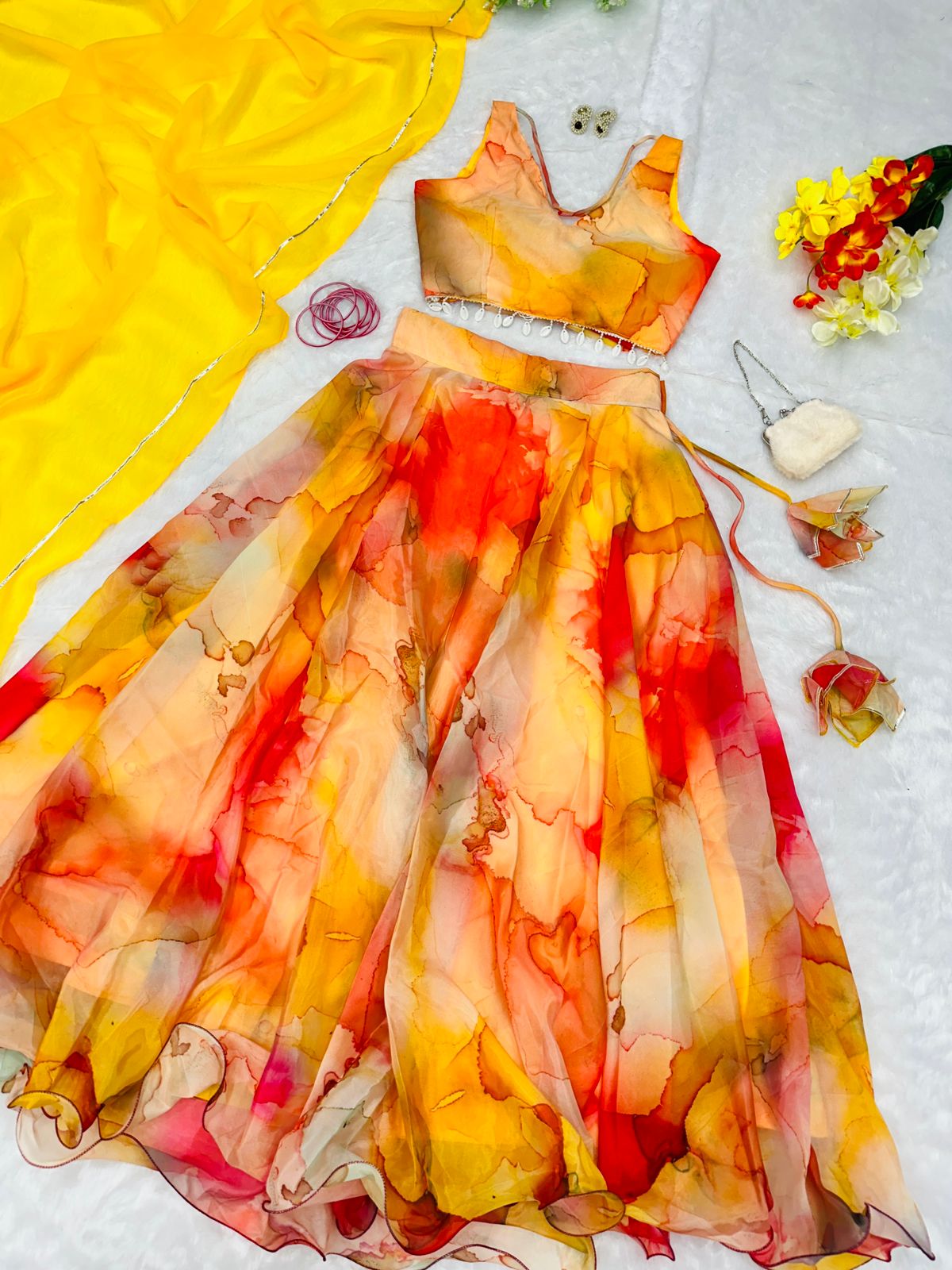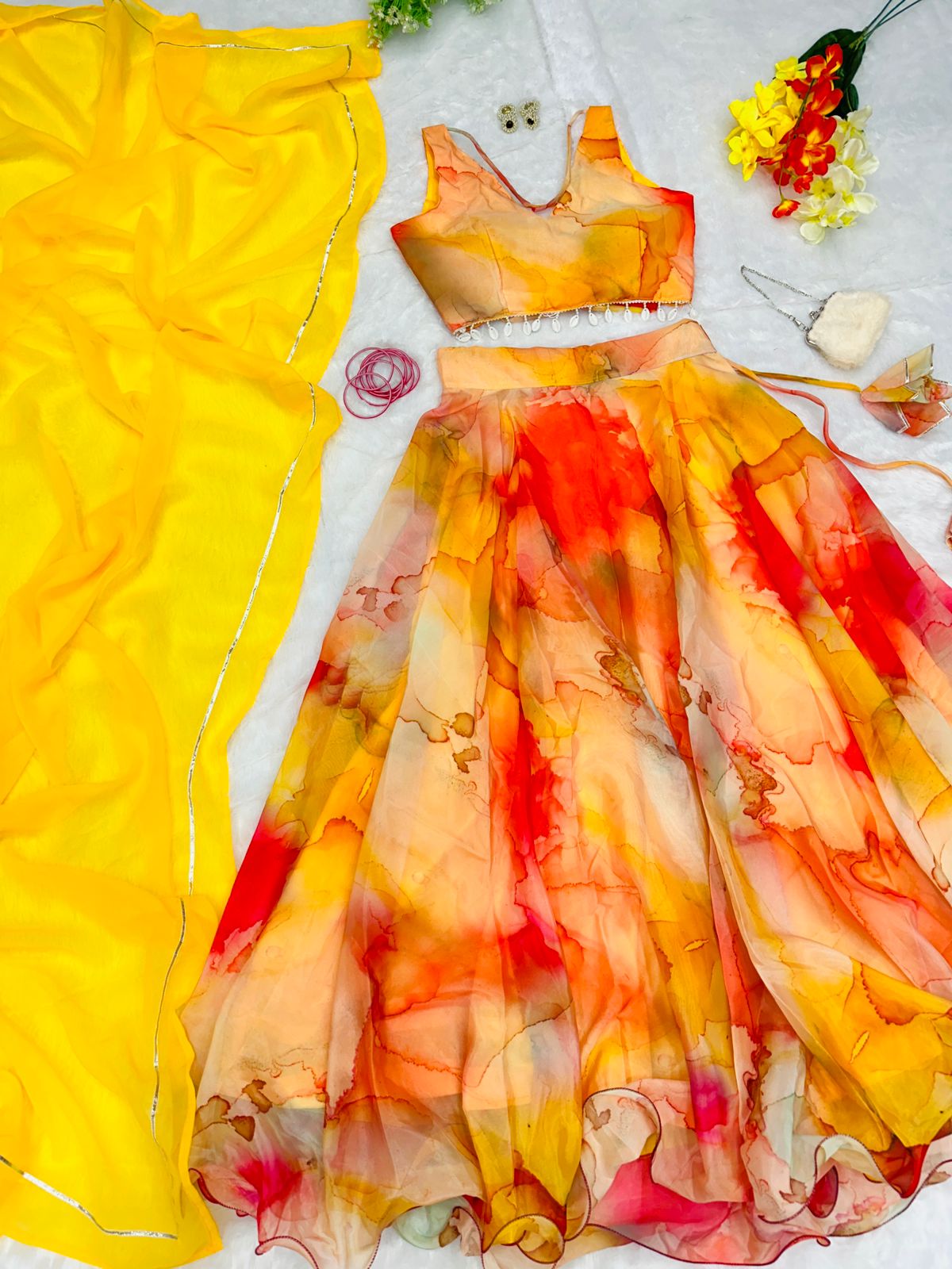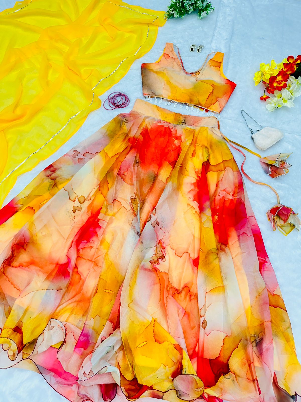 Haldi Style Shibori Print Yellow Color Lehenga Choli