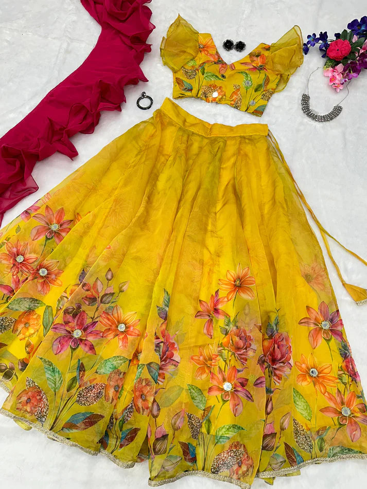 Haldi Wear Fully Stitched Yellow Color Lehenga Choli
