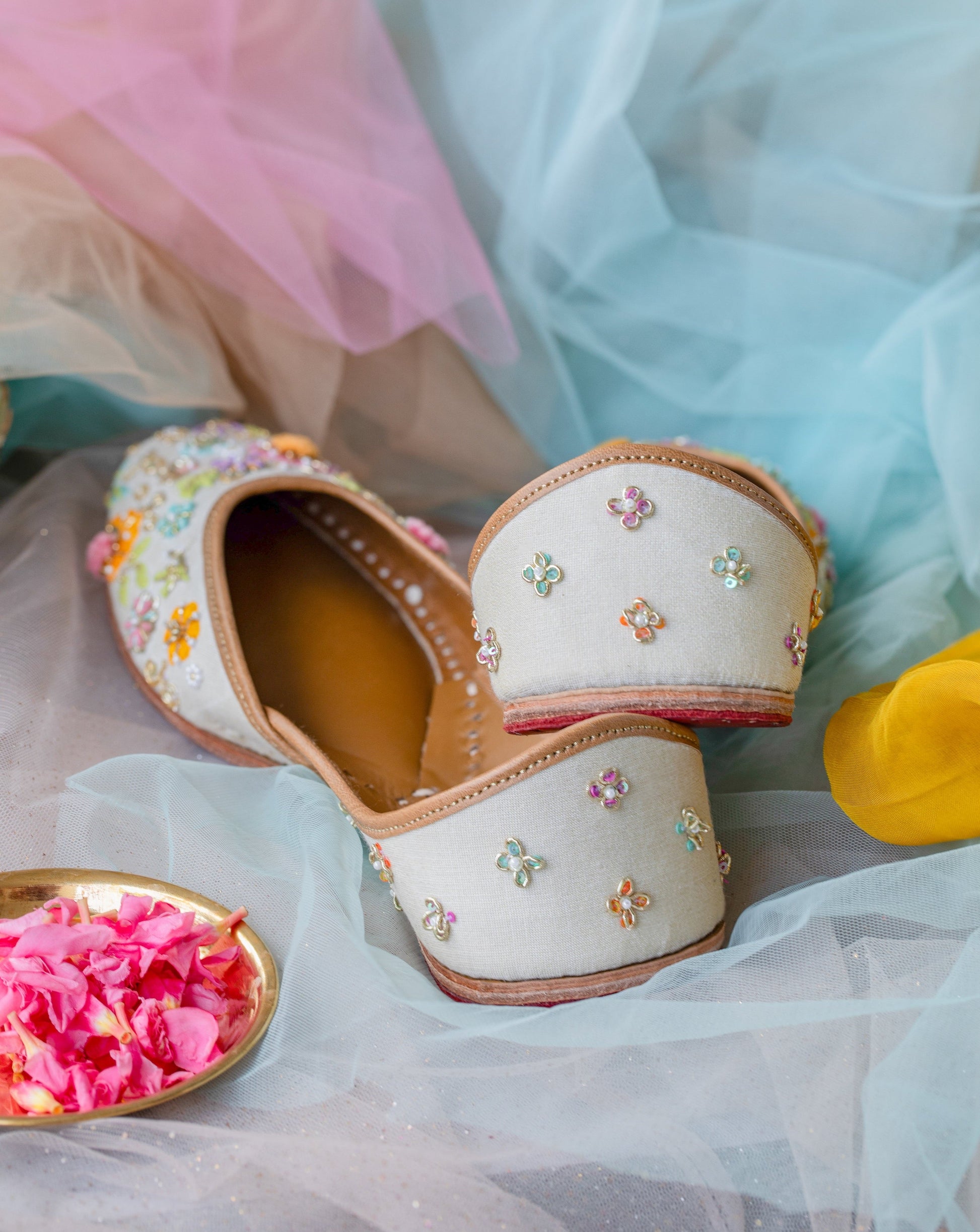 Introducing "Julia" from our latest collection—a charming addition to your wardrobe. Julia boasts a cream tissue base adorned with exquisite hand embroidery. The front showcases a captivating floral pattern created with Zardozi, anchor threads, sequins, and beads. The back is adorned with adorable tiny flowers, adding a touch of whimsy to this enchanting piece. With a versatile color palette, Julia seamlessly complements all your outfits, ensuring you step out in style on every occasion.