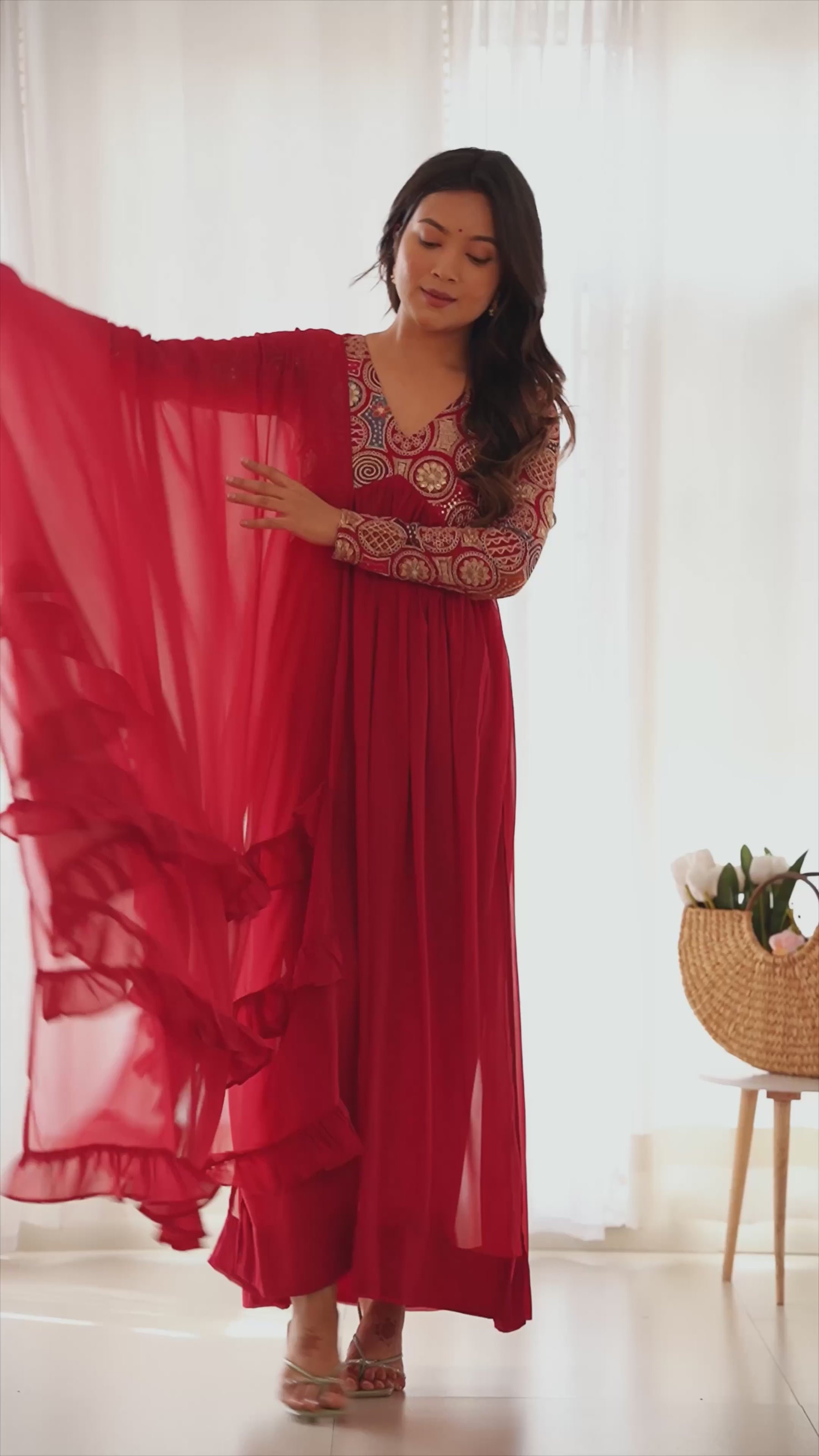 Maroon Color Georgette Alia Cut Three Piece Kurti Suit