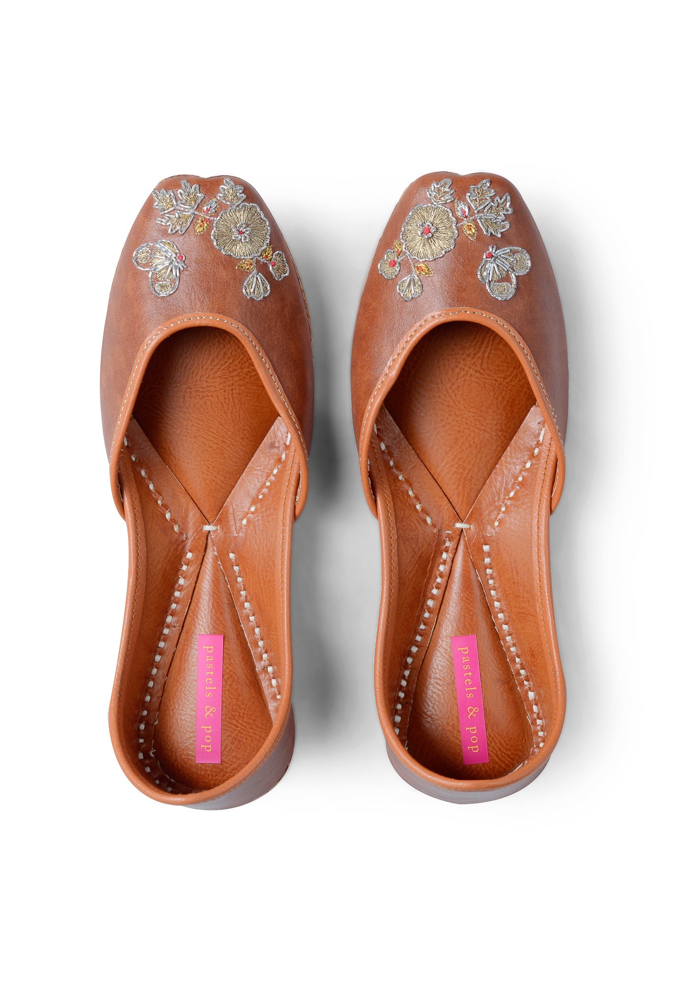 Composition : Upper - leather with intricate hand-embroidery, lining - leather, sole - vegetable tanned leather, double padded for extra comfort.