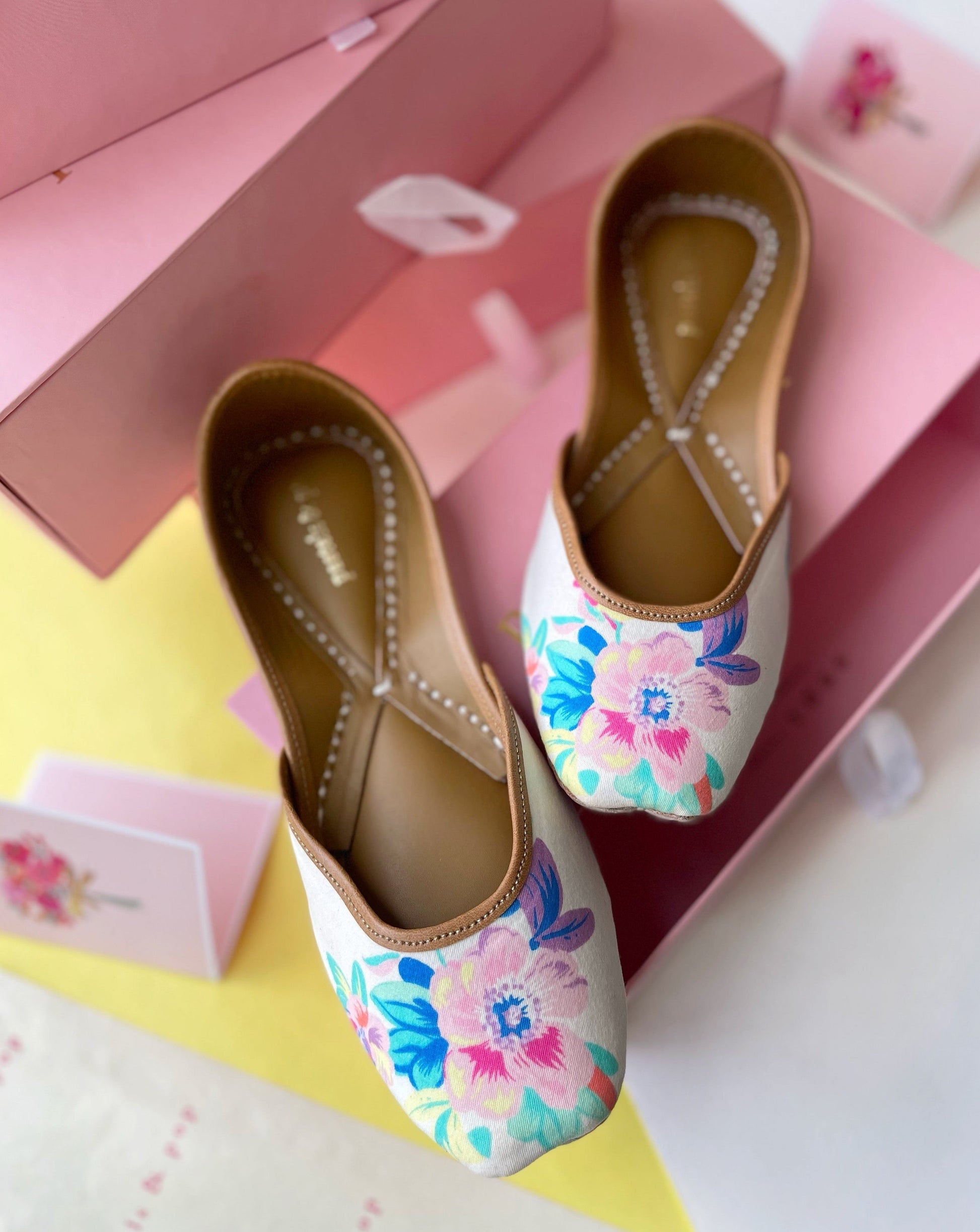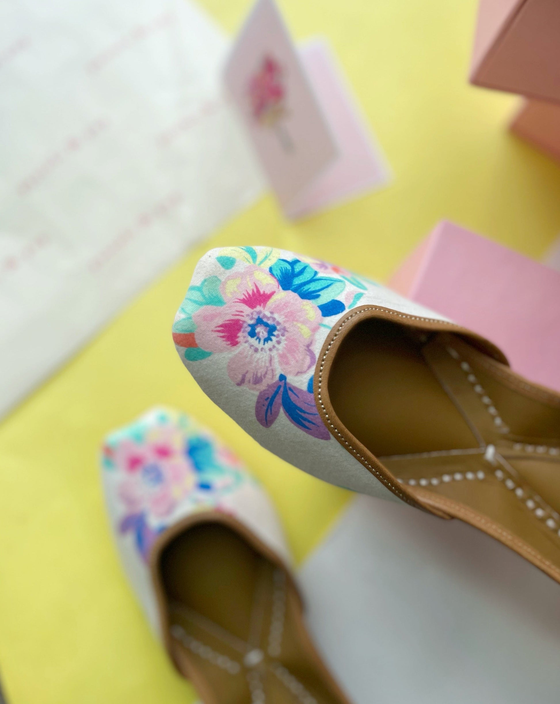 Pretty flowers in shades of pink, green and blue sit beautifully on a white base, while the back sports a ripped denim texture. This Jutti goes effortlessly with your favourite jeans or that fabulous summer dress. You’ll never run out of occasions to sport this pair!