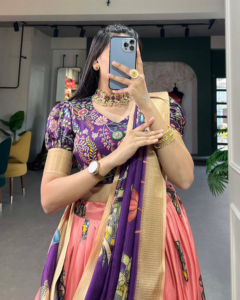Peach Color Dola Silk Designer Kalamkari Print Lehenga Choli